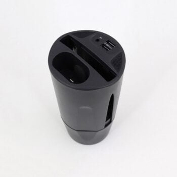 Measuring 4.3 x 3.4 x 3.2in / 110 x 88 x 82mm (weight: 9.6 oz), our charger fits standard vehicle cup holders for a snug fit. Simply plug in the port adapter to power up the cup!