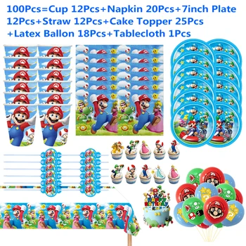 All-in-one Super Mario Bros birthday party supplies set: The kit has everything you need to decorate for a magical Super Mario Bros party, including balloons, plates, cups, napkins, tablecloths, and more.